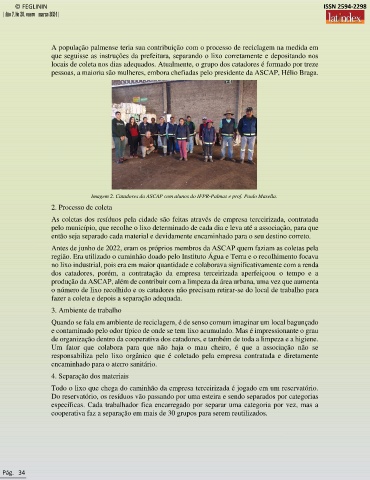 locais de coleta nos dias adequados. Atualmente, o grupo dos catadores é formado por treze