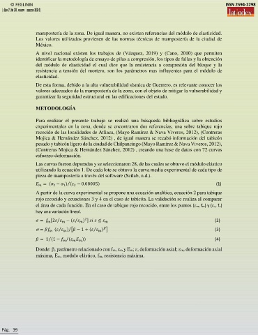 mampostería de la zona. De igual manera, no existen referencias del módulo de elasticidad.