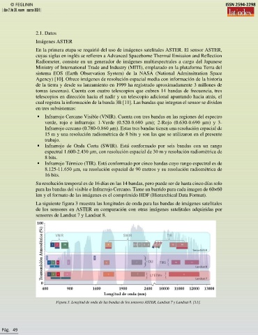 La siguiente figura 3 muestra las longitudes de onda para las bandas de imágenes satelitales