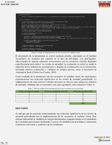 de ansiedad, validando que los escenarios eran tanto agradables como amistosos (Tabla 1).