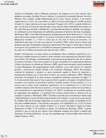 Zürcher & Schlaepfer (2014). Plántulas anormales. En ninguna de las fases lunares hubo