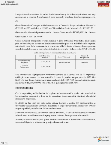 Tabla 3. Comparación Inversión Total-Traslado de bordadoras