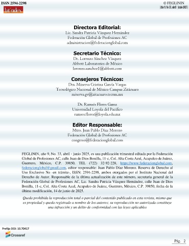 FEGLININ, año 9, No. 33, abril - junio 2025, es una publicación trimestral editada por la Federación