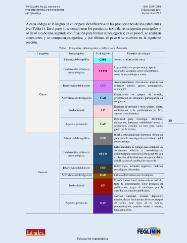 Tabla 1. Categorías, subcategorías y códigos para el análisis.