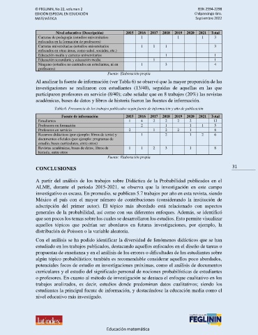 A partir del análisis de los trabajos sobre Didáctica de la Probabilidad publicados en el