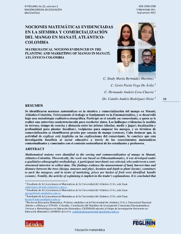 Mathematical notions were identified in the sowing and commercialization of mango in Manatí,