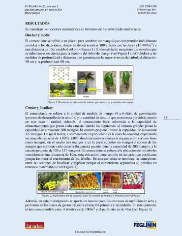 el área comprendida entre 4 árboles es de 100 y el perímetro es de 40m (ver Figura 3).