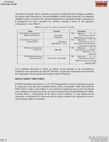 satelitales usadas. Los índices de vegetación planteados en el presente trabajo se generan con