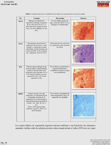 Tabla 2. Comparación de los resultados de los índices de vegetación de la zona de estudio.