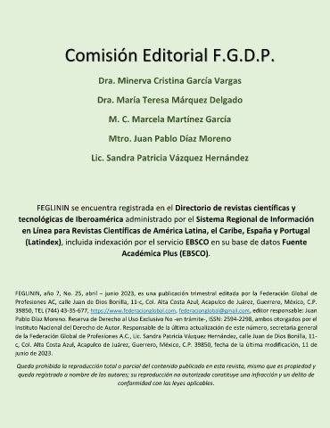 FEGLININ, año 7, No. 25, abril – junio 2023, es una publicación trimestral editada por la Federación Global de