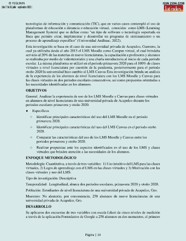 General. Analizar la experiencia de uso de los LMS Moodle y Canvas para clases virtuales