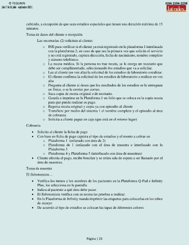 cubículo, a excepción de que sean estudios especiales que tienen una duración máxima de 15