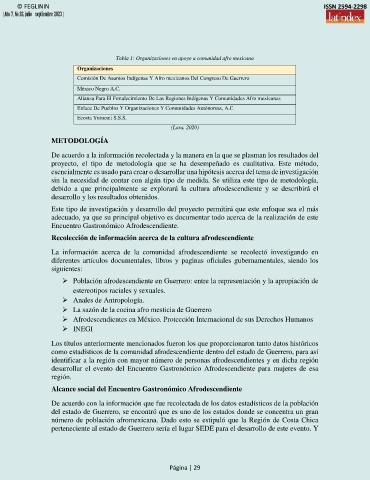 Tabla 1: Organizaciones en apoyo a comunidad afro mexicana