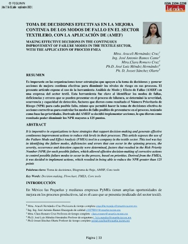 Palabras clave: Toma de decisiones, Diagrama de flujo, AMEF, Core tools