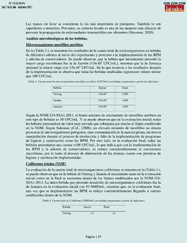 bebidas presentaron una cuenta <100 UFC/mL, lo que indica que con la implementación de