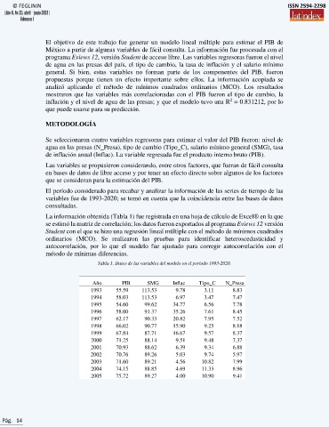 El objetivo de este trabajo fue generar un modelo lineal múltiple para estimar el PIB de