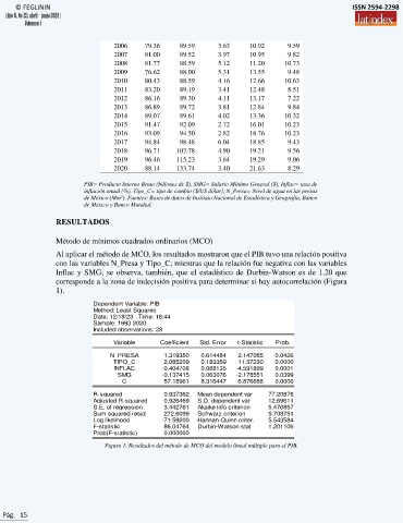 Figura 1. Resultados del método de MCO del modelo lineal múltiple para el PIB.