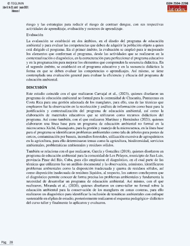 necesidad de desarrollar un programa de educación ambiental. Así mismo, con el que