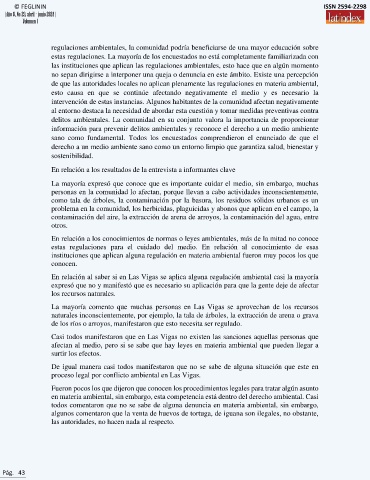 estas regulaciones para el cuidado del medio. En relación al conocimiento de esas