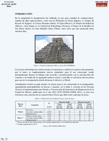 Tabla 1. Clasificación de la mampostería por el tipo de pieza