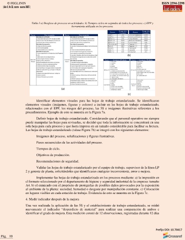 Tabla 3 a) Desglose de procesos en actividades. b) Tiempos ciclos en segundos de todos los procesos. c) EPP y