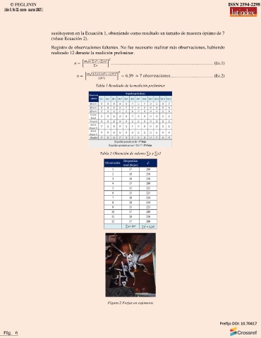 sustituyeron en la Ecuación 1, obteniendo como resultado un tamaño de muestra óptimo de 7