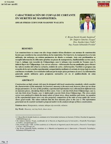 Palabras clave: Mampostería, cortante, tabique rojo recocido, esfuerzo.