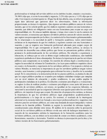 en cuanto a la formación y experiencia de los servidores públicos. Con respecto a énfasis en