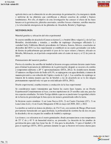 germinación para cada fase lunar fue de: 21 días para la alcachofa, 14 para el betabel y 28