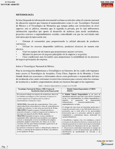 Tabla 1. Modelos Emprendedores actuales en el TecNM