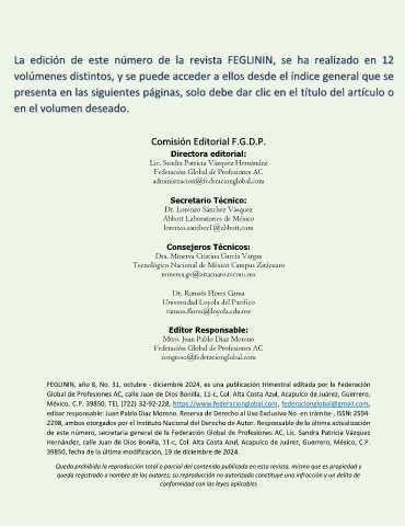 FEGLININ, año 8, No. 31, octubre - diciembre 2024, es una publicación trimestral editada por la Federación